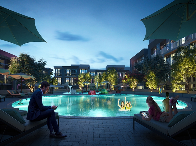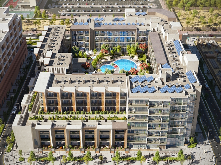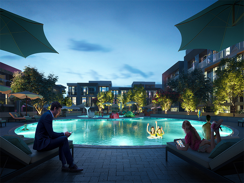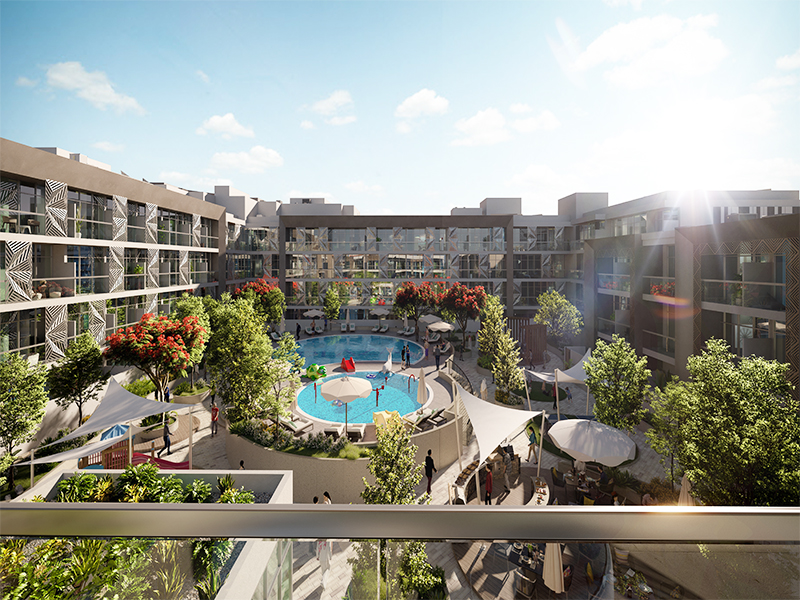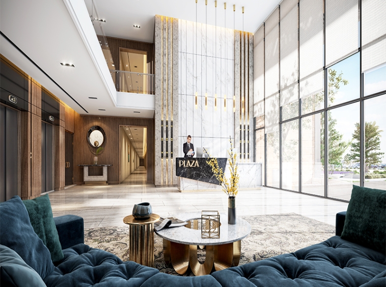 PLAZA is a square-shaped residential complex comprising Triplex Townhouses and Simplex Apartments offering direct access towards swimming pool and natural sunlight with a soft touch of Arabesque patterns.